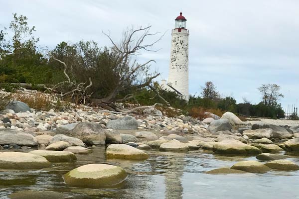Chantry Island features a prominent lighthouse and features a bird sanctuary with many interesting coves and interesting birds.