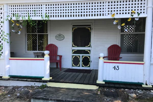 There is a large wrap around porch that provides a large veranda to sit, relax and enjoy the sunsets of magnificent Lake Huron.