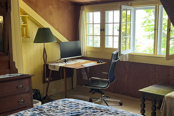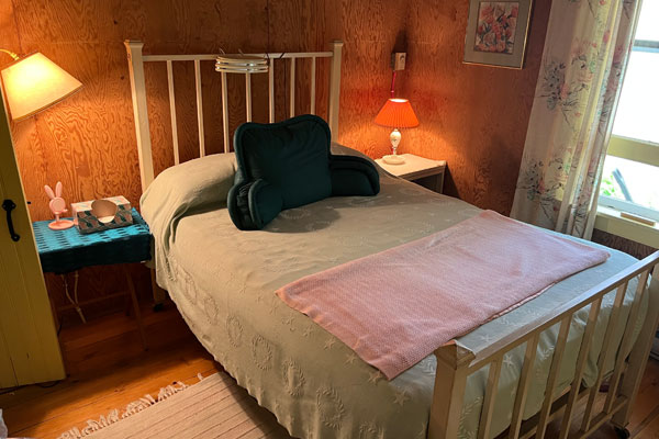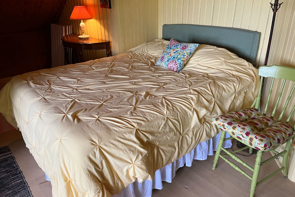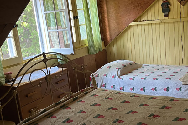 This bedroom has lovely filtered light and stays cozy all day long.