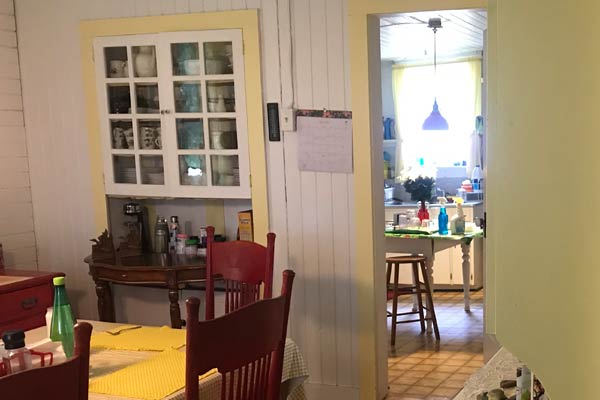 You can dine inside in the large 10-place dining room, or outside or the large wrap around porch on either the 6-place picnic table or 4-place patio table.